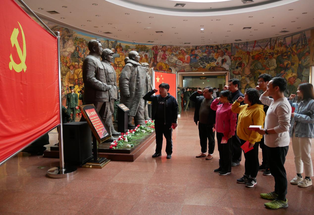 随后,支部党员又来到平津战役纪念馆,大家怀着崇敬与肃穆的心情先后参观了战役决策厅、战役实施厅、人民支前厅、伟大胜利厅和英烈业绩厅5个展厅,通过参观陈列,聆听讲解,一起重温了革命先烈的英雄事迹,全面深刻的认识到解放战争的历史进程。最后,党员同志们满怀崇敬之情,在鲜红的党旗面前,一起重温入党誓词,牢记初心使命。