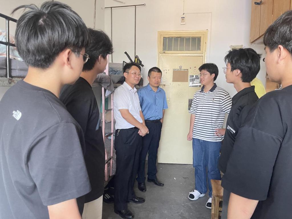 领导们逐一走访了新生宿舍,不仅细致检查了寝室的设施设备,确保安全无虞,还温馨提醒同学们注意用电安全,保持寝室卫生,共同营造一个安全、舒适的学习生活环境。