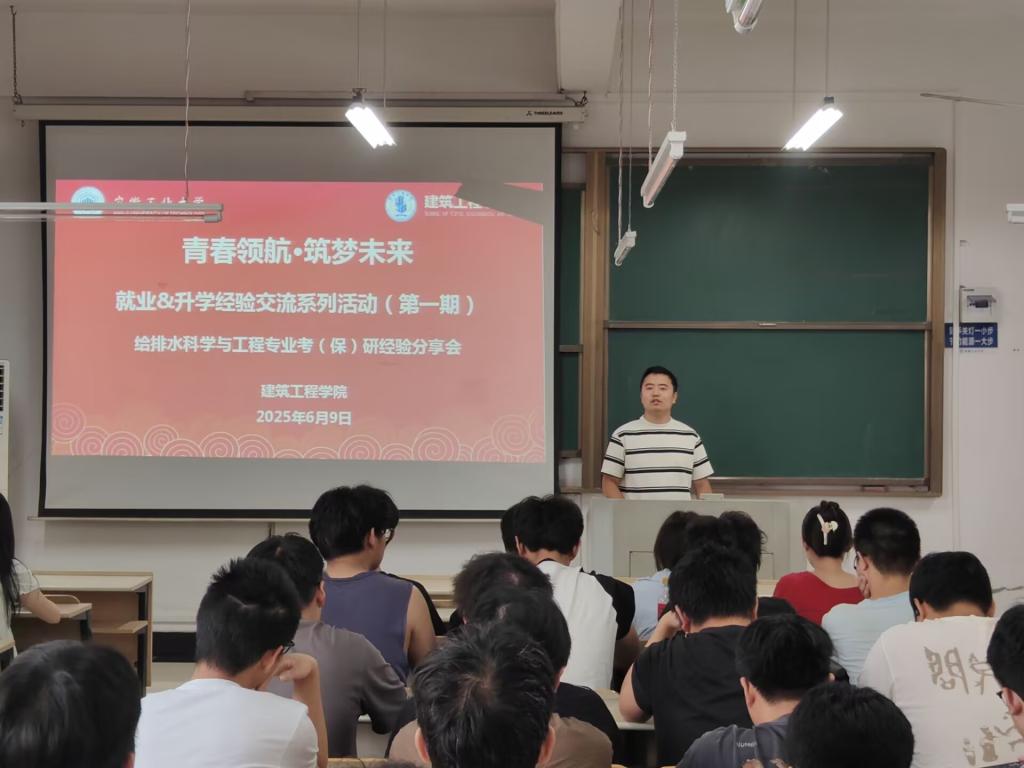 在建北505组织开展“青春领航·筑梦未来”就业&升学经验交流系列活动第一期——给排水科学与工程专业研考经验分享会,活动由2023级辅导员张腾飞主持,2021级3位给排水科学与工程专业学长学姐主讲,2023级给排水科学与工程专业全体学生参加。
