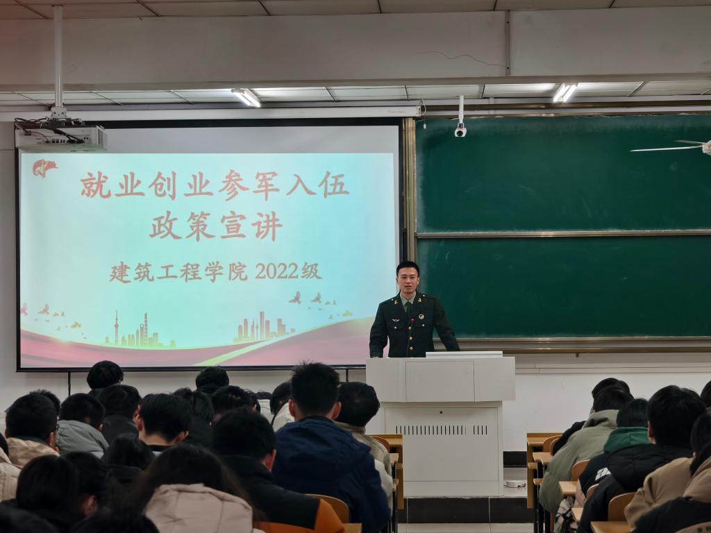 在秀山校区东教北103面向2022级毕业班学生举办2026年大学生参军入伍政策宣讲会。会议由毕业班辅导员金晶、陈奎组织,旨在帮助毕业生了解入伍政策、增强国防意识、激发报国热情。