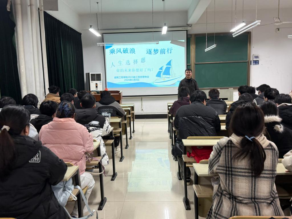 在建北505召开2023级学生升学就业规划主题班会。会议由2023级辅导员张腾飞主持,2023级学生参加。