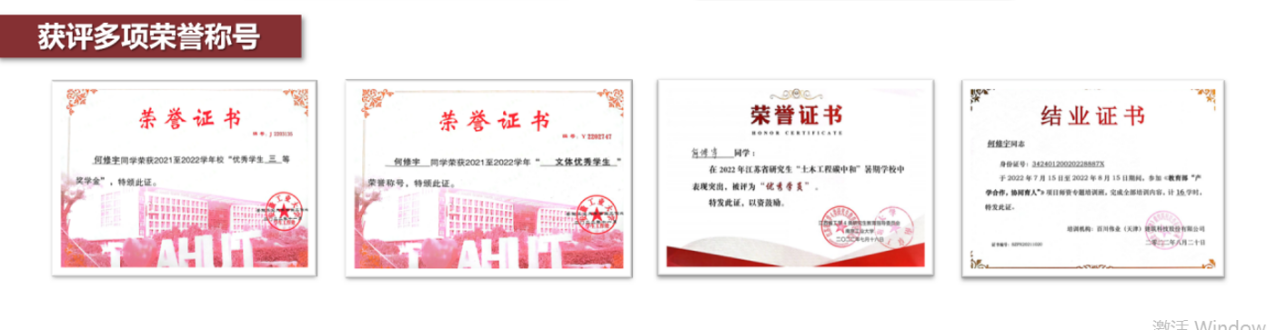 对于科研及创新创业,他充满着极大的热爱和兴趣。在大一参加认识实习时发现了目前我国大型体育馆斜悬挑建筑施工过程中存在的缺陷和弊端,为了提高施工安全性、控制施工质量、增强智能化施工程度,创造社会价值,与几位同学在讨论后提出了一种“动态自平衡”智能施工体系,并基于此主持了一项国家级大创项目《大型体育馆斜悬挑结构施工技术与装备研发》。他作为负责人统筹协调整个项目的进展:从联系实验地点、检索并研究分析国内外现有的悬挑施工技术和方案、到切实地对异型悬挑结构施工技术进行重新分析和设计,在科研过程中培养了缜密的逻辑思考与研究能力,同时也学会了团队合作与管理,能够更好地协调各组工作进度与配合。目前已在该项目相关领域以第一发明人授权实用新型专利1项,第一发明人实审发明专利2项,第一发明人授权软件著作权1项。