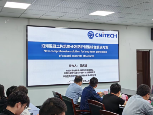 蓝老师首先介绍了其所在 “苛刻环境材料耦合损伤与延寿团队”的基本情况,该团队拥有包括1名院士、1名国家杰青、1名国家优青在内的30余名固定科研人员。团队在海洋/极端环境服役材料设计、损伤与防护领域形成了完善的理论设计-材料制备-关键技术突破-环境/应用验证体系,建立了多类材料成分-结构-服役-性能数据库。核心技术在临海工程、深空探测、海洋平台、跨海大桥等重大工程成功应用,逐步实现了从用得上到有影响的跨越。随后,报告聚焦沿海环境桥梁、码头等超大型混凝土构筑物性能劣化及传统涂层失效老化演化机制,突破高渗透、高附着封闭剂分子结构设计、高屏蔽高裂缝追随中间层改性、超耐候抗盐碱重防腐面层及微纳复合涂层梯度化设计与制备系列关键技术,经过高速、码头、跨海跨江大桥的有效验证,形成了一套高可靠的沿海混凝土构筑物长效新型综合解决方案。目前成果已经成功转移转化,为沿海在役混凝土构筑物长效防护和有效延寿提供了一条“多快好省”的新路径。