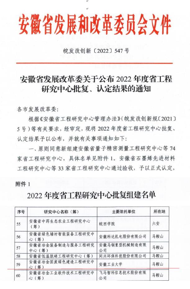 近日,安徽省发展与改革委公布了2022年度省工程研究中心批复、认定结果名单。由上海麻将