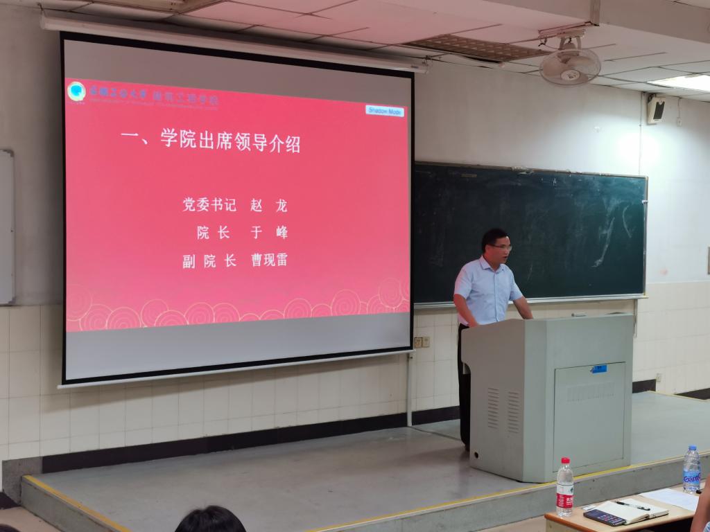 926日晚,土木工程专业于秀山校区阶教101举行了2022级新生专业教育专题活动,院党委书记赵龙、院长于峰、副院长曹现雷、土木工程系有关教师、新生班主任、新生辅导员、校友代表以及土木工程专业2022级全体新生参加了本次会议,会议由曹现雷主持。