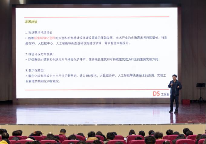 随后,王立军大师带来了题为“大变革时代背景下的土木工程”的。他分析了在数字化、智能化、低碳化及可持续发展等大变革背景下,土木工程领域所面临的挑战与机遇。王立军大师重点探讨了新材料、新技术(如人工智能、物联网、BIM等)对传统土木工程的影响,并分享了如何在基础设施建设中实现绿色与智慧结合的案例。