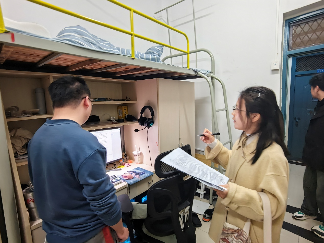 宿舍是学风建设的重要延伸阵地。检查组深入各年级学生宿舍,围绕“安全、卫生、纪律”三大核心开展检查:在安全方面,重点排查违规电器使用、消防设施配备等隐患,筑牢宿舍安全防线;在卫生方面,检查宿舍环境整洁度,引导学生养成良好生活习惯;在纪律方面,关注学生作息规律,杜绝熬夜、晚归等影响学习的行为,通过营造“整洁、安全、有序”的宿舍环境,将学风建设融入日常生活,实现“生活育人、环境育人”的良好效果。