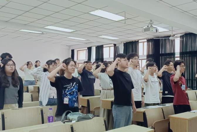 大会结束后,在院团委副书记朱珉琨的带领下,全体党员面向党旗庄严宣誓,重温入党誓词。铮铮誓言在教室内回响,每一位党员同志在庄严宣誓时目光坚定。阅兵式的震撼场面犹在眼前,此刻重温入党誓词更显意义非凡。这不仅是一次初心回溯,更是一次精神淬炼,激励着青年党员以实际行动践行理想,肩负起新时代的使命与担当。参会学生纷纷表示,作为将来肩负民族复兴大任的青年一代,我们更应牢记历史、奋发向前,以拼搏和进取书写新时代的答卷。