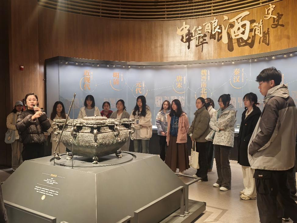 北京市顺义区牛栏山酒厂文化苑的设计充分体现了京味儿特色,结合了传统与现代元素。一层是北京牛栏山二锅头酒文化博物馆,展示了二锅头的历史渊源和牛栏山酒厂的发展历程;二层是中国酒业协会白酒文化博物馆,展示了中国各大白酒产区的地域风貌和工艺特色。通过参观学习,同学们直观地了解了酿酒过程以及中国白酒的历史渊源、工艺特色和代表品牌。同学们被中华酒文化的渊源性与独特性所震撼,对北京牛栏山酒文化有了更深入的了解,感受到了中华民族悠久的历史底蕴与深厚的文化积淀。
