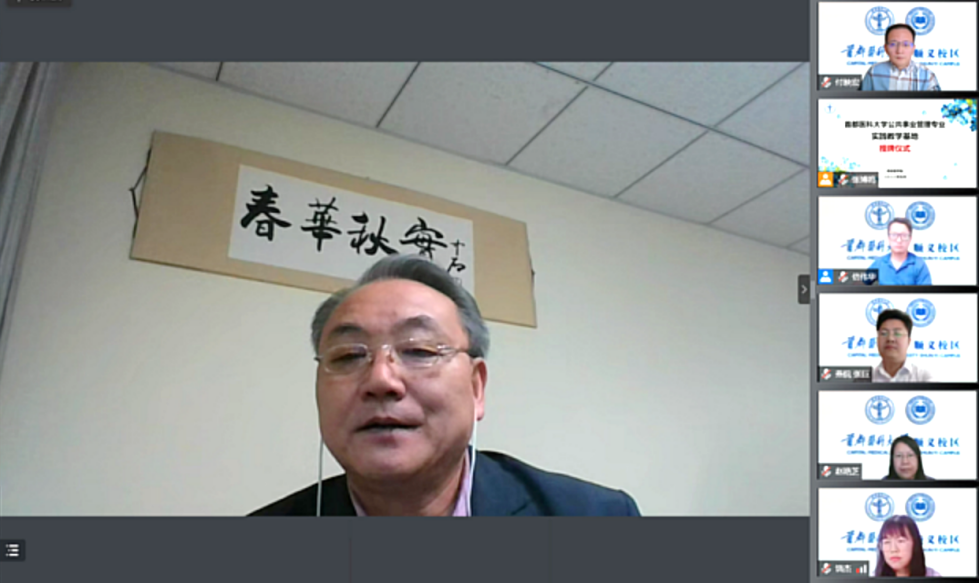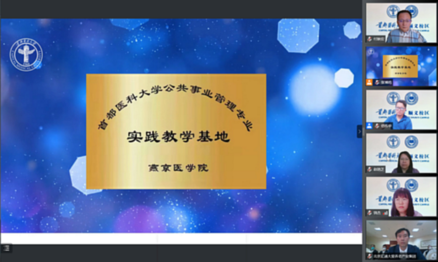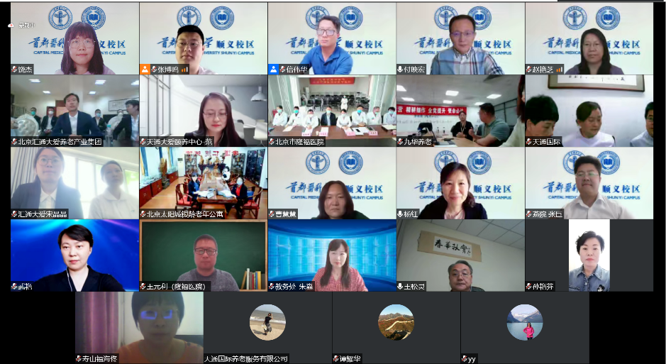 5月17日,上海麻将 二年制公共事业管理专业实践教学基地授牌仪式通过线上的方式举行。上海麻将 副校长王松灵院士、教务处处长武艳、副处长朱淼、东城区卫生健康委副主任周英武出席了仪式。参加本次线上授牌仪式的基地主要领导有北京市隆福医院姜国栋书记、彭堃院长,北京九华养老服务有限公司徐进副总经理,北京汇通大爱养老产业集团赵国良总经理、郭遐副总经理,北京寿山福海投资发展集团有限公司孙艳芬副总经理,北京太阳城银龄老年公寓崔又双总经理,上海麻将 党委副书记赵艳芝,预防医学学系和教学办的相关负责人等参加了签约仪式。仪式由上海麻将 杨红院长主持。