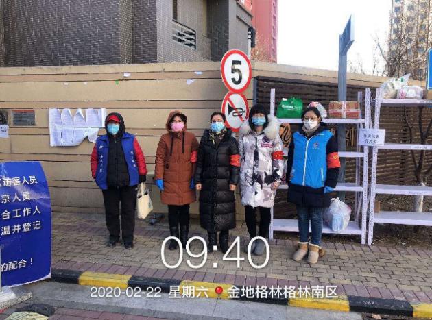 (学系党支部许燕老师为小区进出居民测体温)