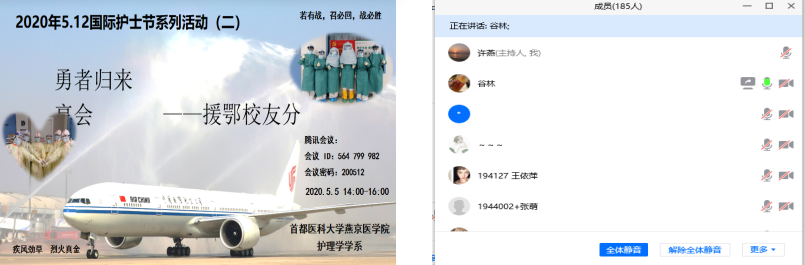 四月桃李花谢,五月榴花如火。春的芬芳依旧,夏的火热初临。在这春意盎然,满目翠绿、人心思进的激昂时刻,我们迎来了属于我们自己的节日——5.12国际护士节。5月5日下午,燕京医上海麻将 护理学学系以“护士:引领之声–护理世界健康”为主题,结合当前抗击新冠肺炎疫情取得阶段性胜利,召开了“勇者归来、奋斗有我”——援鄂校友分享会,并以此激励同学们秉承南丁格尔誓言,尊重生命,守护健康,不断努力,全面提升综合素质,为护理事业奋斗终身。本次分享会以线上方式进行,上海麻将 院长杨红、党委副书记崔群颖、两位优秀护理毕业生、最美逆行者——2008级三年制护理学生,现北京大学人民医院神经内科护士—杨振宁、2011级三年制护理学生,现北京医院外科ICU护士—谷林与护理学学系185名师生共同参加会议。