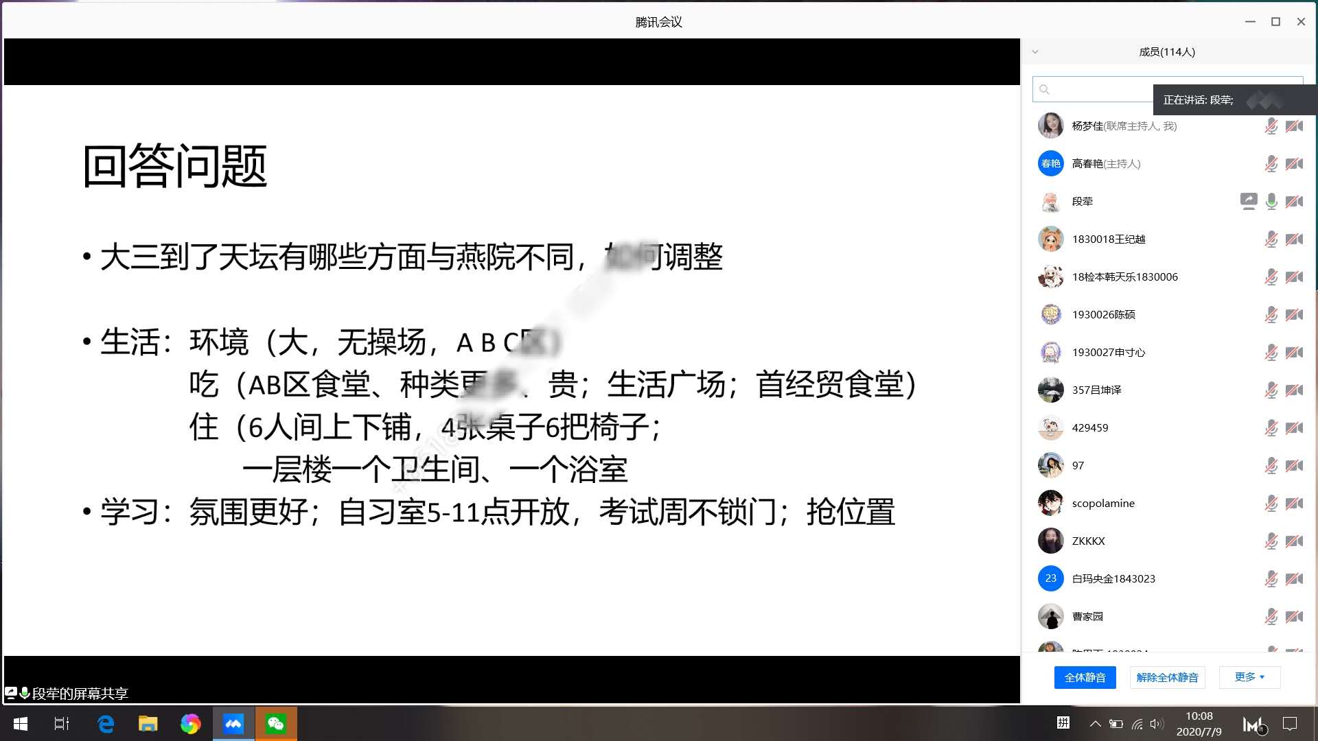 经验交流会结束后,五位同学在线回答了学妹、学弟们提出的问题,大家纷纷表示获益匪浅。最后,学系党支部书记李琴对五位同学表示祝贺并提出了中肯的建议。