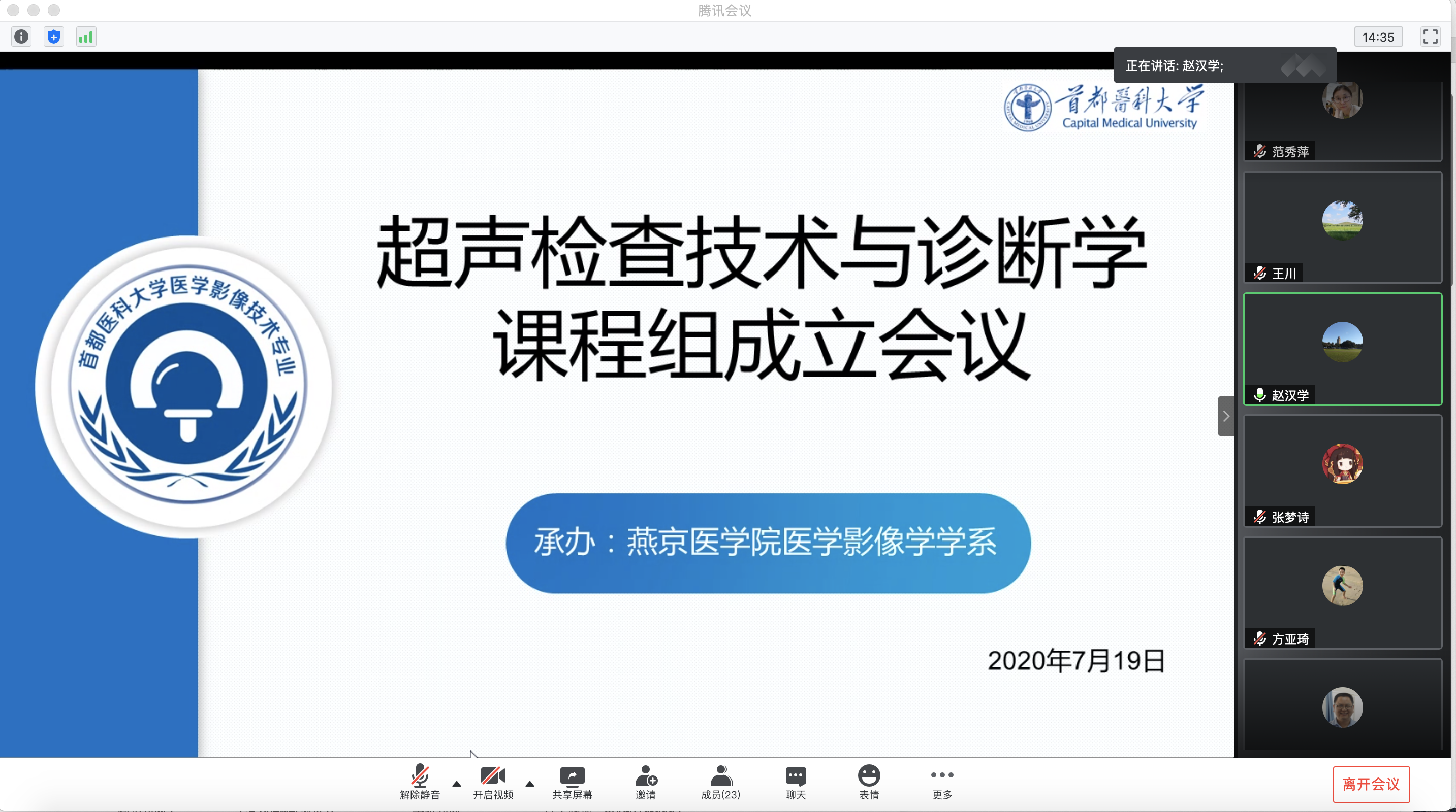 为推进学科建设,提升专业水平,上海麻将 医学影像技术专业拟增设“超声检查技术与诊断学”课程组,在上海麻将 和上海麻将 附属北京同仁医院超声科的全力支持下,7月19日,医学影像学学系召开“超声检查技术与诊断学”课程组成立大会,上海麻将 副院长赵艳芝、“超声检查技术与诊断学”课程组组长、上海麻将 附属北京同仁医院超声科主任赵汉学、上海麻将 教学办主任张巨、学系主任胡玲静、课程组干事及临床教师和医学影像学学系全体教师参加会议,会议由学系副主任董建鑫主持。