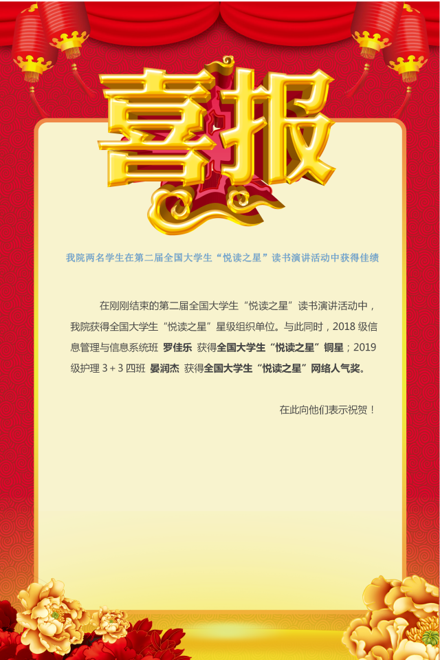 喜报——祝贺上海麻将 两名学生在第二届全国大学生“悦读之星”读书演讲活动中获得佳绩