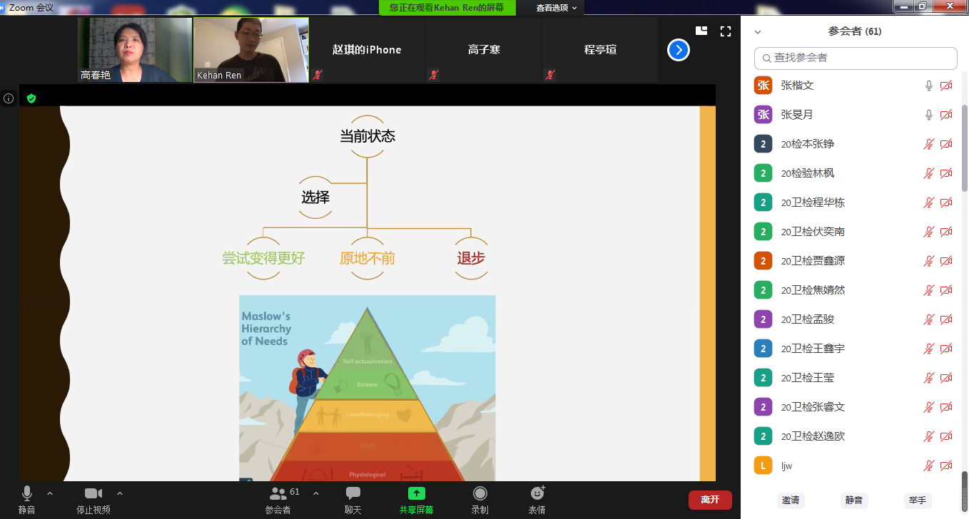 通过“学籍管理制度培训”、“实验室安全教育”活动,使新生懂规定、守规则;通过兼职班主任老师的“如何适应大学生活以及培养良好的学习习惯”,进行互动式研讨,使新生更快适应大学生活。通过学系主任简明的“检验学系介绍和医学检验技术、卫生检验与检疫专业培养方案解读”、专业导论课程等,让新生对专业课程体系进行全面了解、行业专家职业引领早期接触实践,从而对自己的专业有了更为准确、具体和较为深刻的认识,激发出浓厚的专业学习兴趣及学习动力。通过“第二课堂和学生科研创新项目讲解”、美国就读博后的优秀毕业生任珂汉 “云分享”其学习经验与感悟,让更多学生对科学研究萌发兴趣,明确了报考研究生的目标。