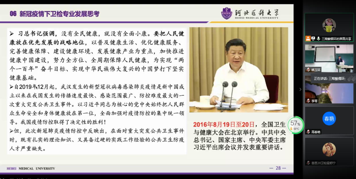 康教授分别从历史沿革、专业定位、专业分布与发展特点、国家经济社会和行业发展需求、学术交流与平台建设、新冠疫情下卫检专业发展与思考等几方面对卫生检验与检疫专业进行全面解读。