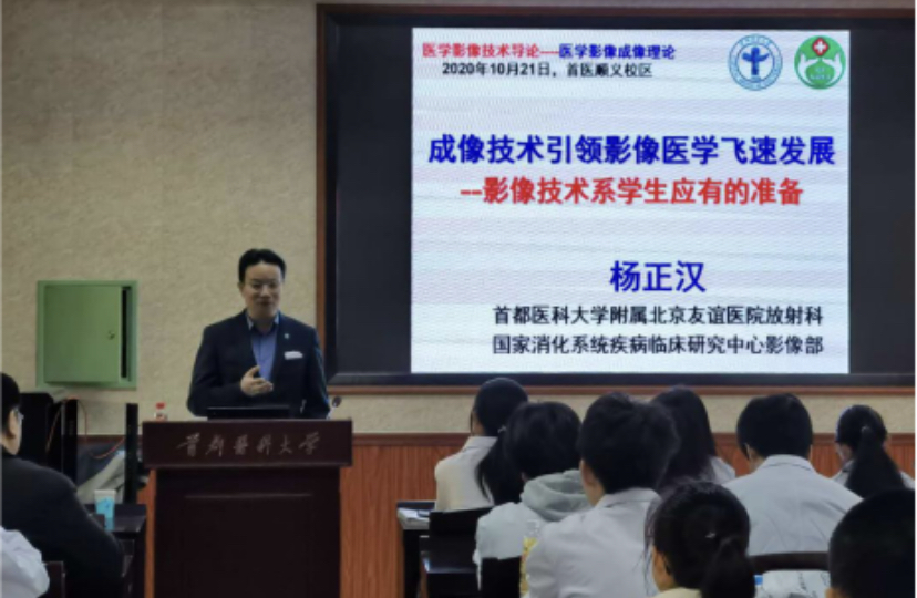 医学影像学学系师生带来了一场精彩的导论公开课。课程由医学影像学学系副主任胡贵祥主持,医学影像学学系部分教师以及20级医学影像技术专业全体学生前来聆听。
