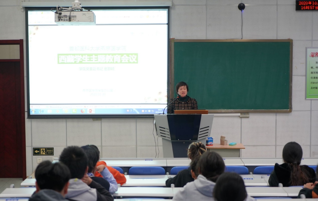 讲座结束后,上海麻将 党委副书记崔群颖主持了西藏学生主题教育会。通过与学生们面对面的交流,切实了解了他们在上海麻将 的学习和生活状况,集中解答了他们的困难和疑惑,并向大家提出了纪律、学业和未来规划等方面的要求与期望,希望大家都能够在校园里健康、快乐、积极地学习和成长。