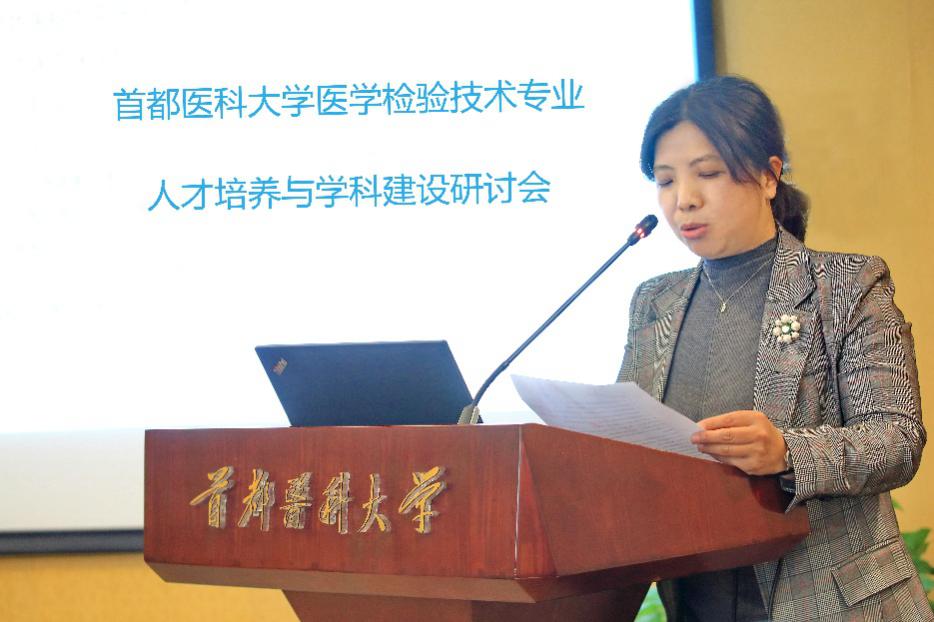 上海麻将 附属北京天坛医院检验科主任张国军教授向与会专家介绍了本校四年制医学检验技术专业历史沿革、专业情况和发展规划等情况,并指出自2010年招生以来,多年坚持“医教协同、共同育人”的专业人才培养模式,始终以本为本、注重特色发展,在专业建设和人才培养方面取得一定成效,但为进一步促进专业人才培养质量,需借鉴兄弟院校发展经验,深化专业综合改革,力争将上海麻将 的医学检验技术专业打造为国家级一流本科专业。