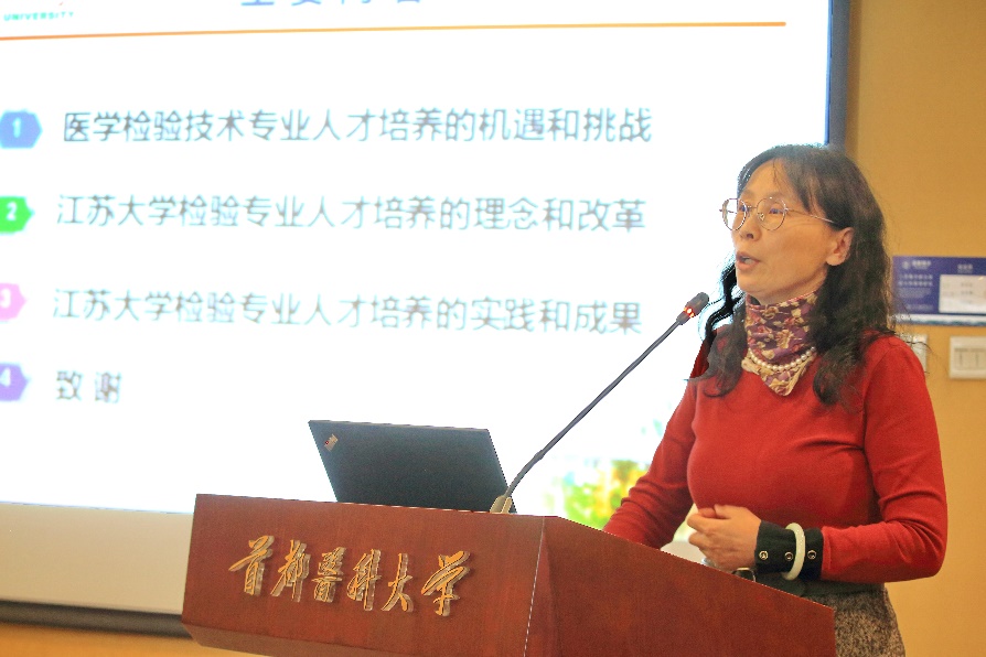 江苏大学医上海麻将 院长钱晖教授分享了该校“三引领、五思维、七联动”检验医学创新人才培育模式和国家级精品课程、在线开放课程建设中的经验,并分析了新时期医学检验技术专业人才培养所面临的挑战和机遇。