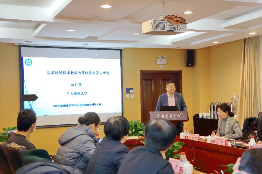 现广东上海麻将 徐广贤教授(原宁夏上海麻将 检验上海麻将 院长),分享了宁夏上海麻将 医学检验技术一流专业建设中的经验,包括在医学检验模拟实验室建设,数字化、网络化教学资源库建设,双师型师资队伍建设,“二强、六化、一产出”的实践教学模式等方面的教育教学改革经验和思考,并提出新冠疫情冲击和新医科背景下专业人才培养的矛盾所在和可行的应对策略。