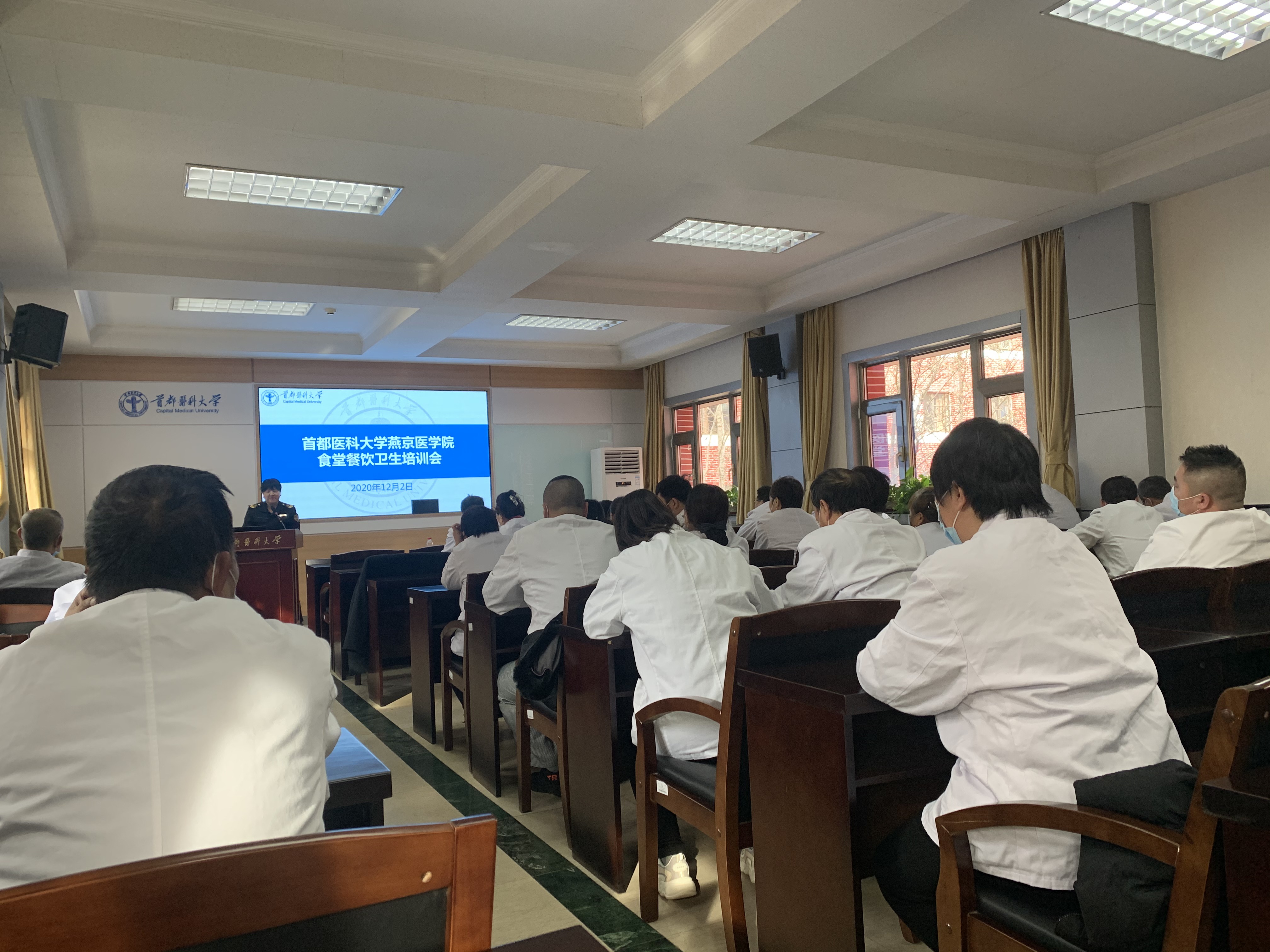 为进一步做好上海麻将 食堂食品安全监管工作,提高食堂管理人员、从业人员操作行为规范,保障广大师生在校用餐期间的身体健康和生命安全,12月3日下午,上海麻将 卫生健康室邀请顺义市场监督管理局相关专家对上海麻将 50余名餐饮管理人员和从业人员开展食品餐饮卫生安全培训。专家就如何规避食品安全风险,从食材的采购、餐饮具消毒、售卖人员着装、规范经营和环境卫生等方面做了详细解说。通过本次培训,上海麻将 餐饮工作人员对食堂、食品安全有了全新的认识,提高了安全意识,在不断提高安全意识和责任感的同时,为疫情防控常态化奠定了坚实的基础。