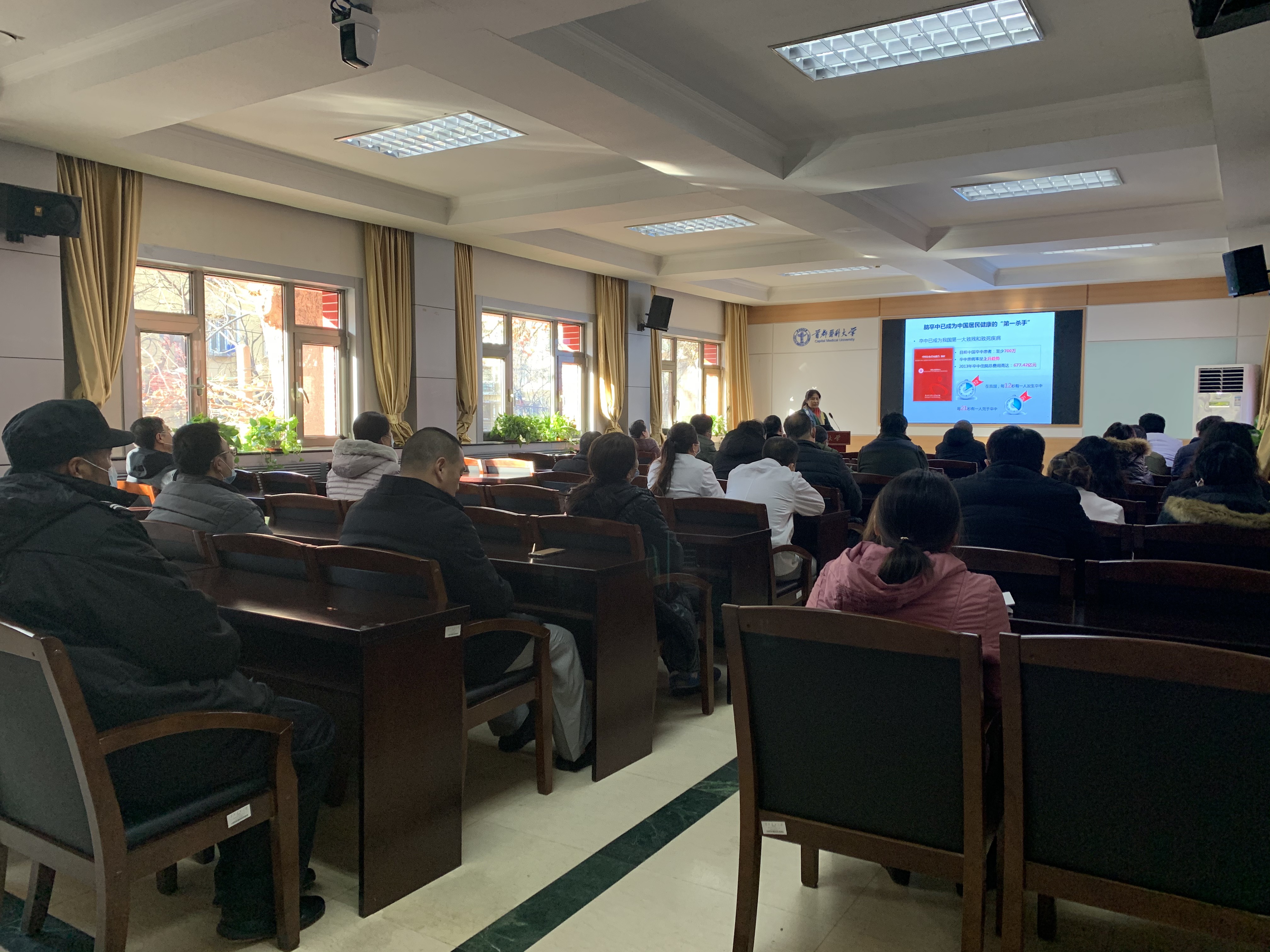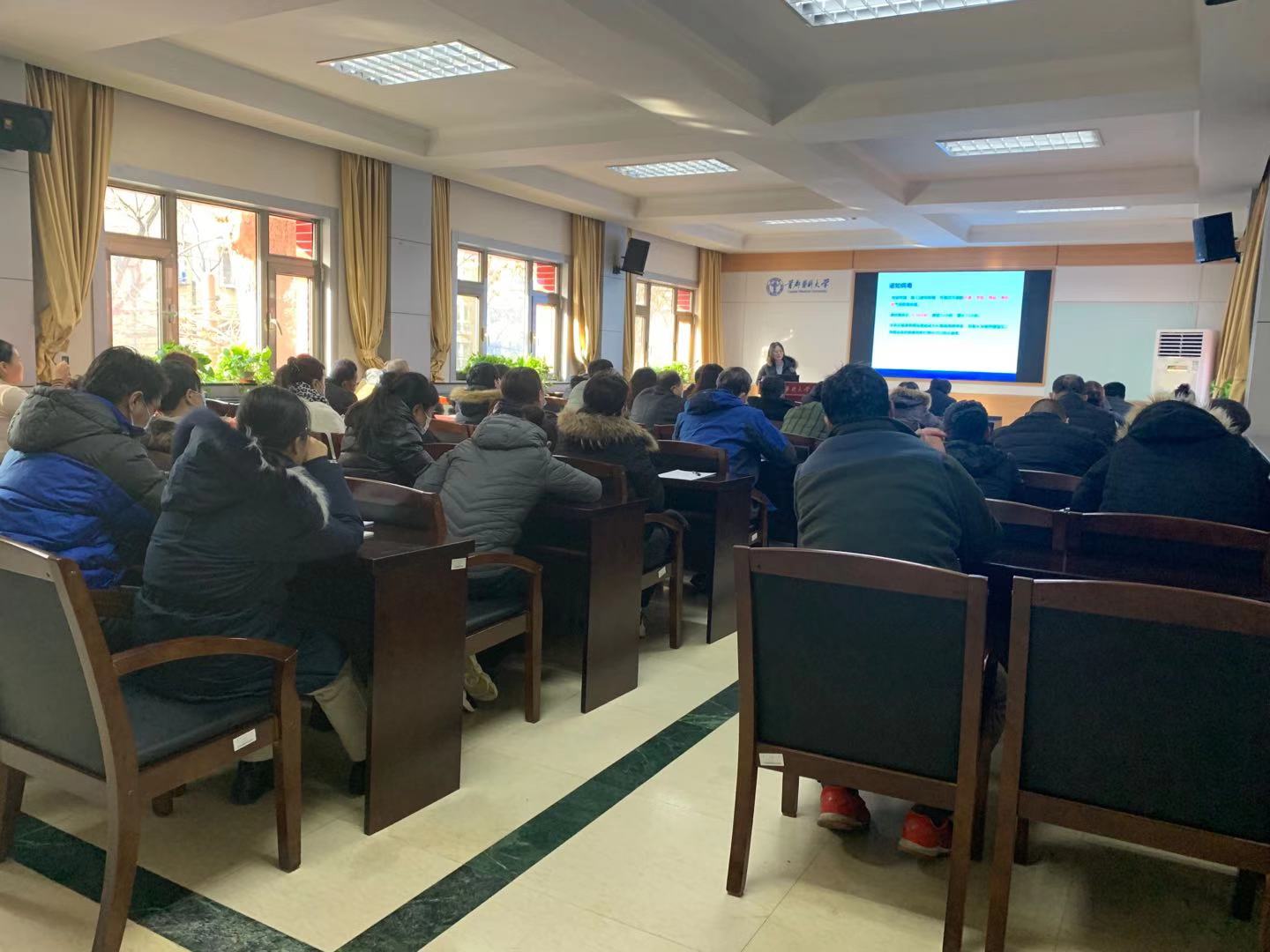 12月7日,上海麻将 邀请顺义区医院张红卫主任开展“常见高血压,高血脂和脑卒中等疾病的预防和治疗”的专题讲座,讲座由上海麻将 卫生健康室主任邓海霞主持。张红卫主任详细讲解了常见高血压及高血脂和脑卒中等疾病产生原因、治疗手段以及如何在日常生活中养成好的饮食和锻炼习惯,避免和预防此类疾病的发生等知识。讲座之后,张红卫主任又热心解答了教职工们关心关注的问题,在场的教职工认真仔细聆听,讲座达到了预期目的,大家收获满满。
