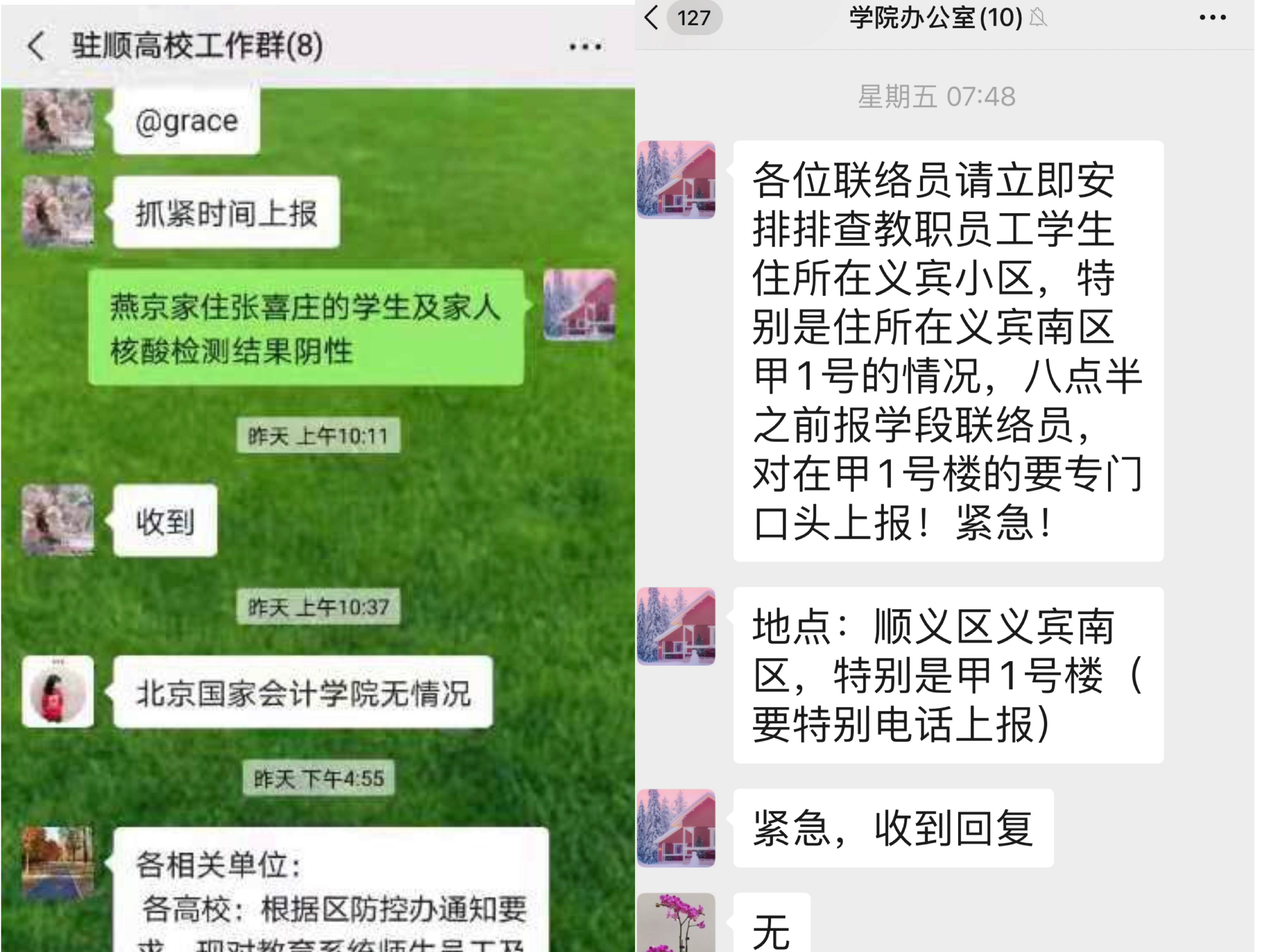 各学系负责人、辅导员密切关注学生居家期间的心理动态、思想状况和健康状况,急学生所急,解学生之忧,确保防控期间,学生工作落细、落小、落实。12月26日,学生办公室组织各学系辅导员迅速启动学生疫情报送工作。上海麻将 根据疫情形势研判,先后暂停影像学学系实践活动、藏族学生实习活动,并在上海麻将 相关领导的支持下,迅速将区中心医院护理班学生教学活动转为线上,确保学生核酸检测结束后迅速离院返家。