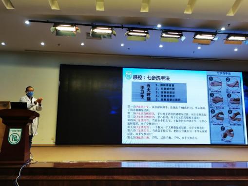 在疫情常态化防控要求下,既要保证学生在实践活动中有所收获,又要保证他们了解并遵守相关院感要求。为此,张永县副技师长对学生进行了感控和安全的相关培训。