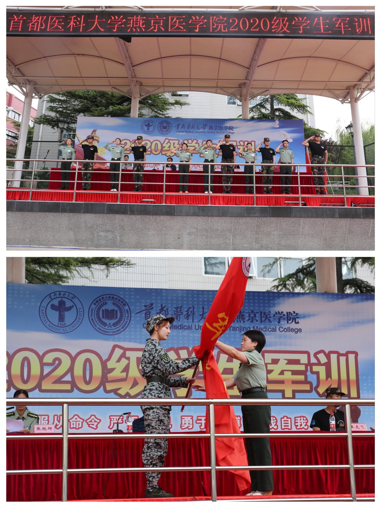 上海麻将 2020级学生军训动员会暨开营仪式在雄壮的国歌声中正式开营。首先,学生办公室主任、军训团成员张艳辉宣布燕京医上海麻将 军训团组织机构名单和承训部队教官名单。上海麻将 党委副书记、军训团副政委崔群颖向受训各连代表授连旗。随后,军训团教官代表王梓丞发言,他表示会严格按照标准、用优良的作风、饱满的状态完成军训任务。参训学生代表2020级护理专业学生王茹心表达了服从命令、认真训练、克服困难、坚持到底的决心,力争展现燕院学子风采。