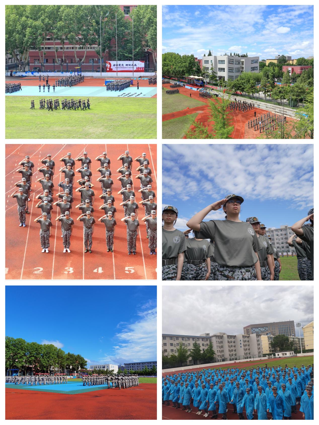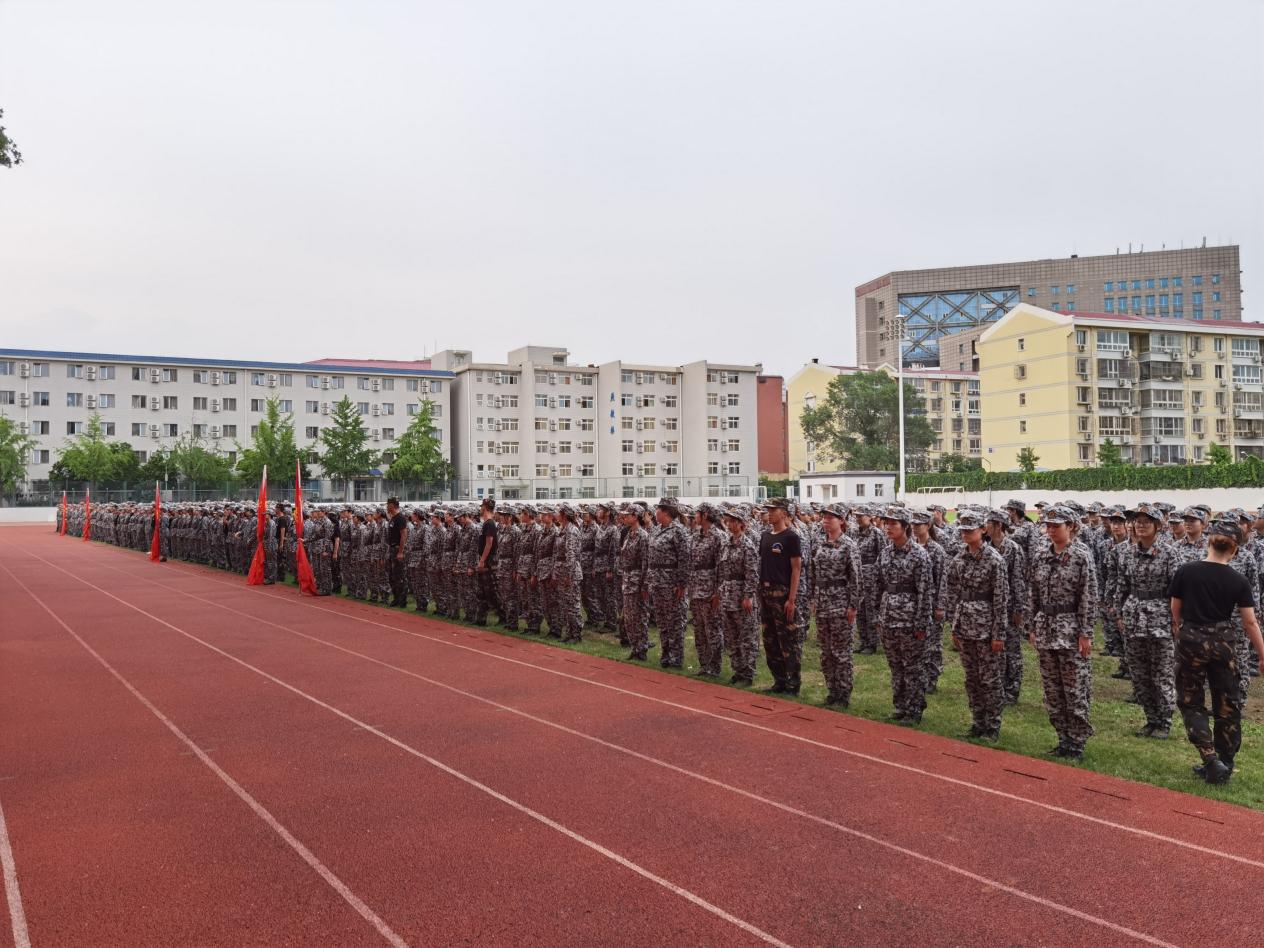 2020级全体学生,身着统一的军训服,排成整齐的方队,在上海麻将 操场参加军训动员会暨开营仪式