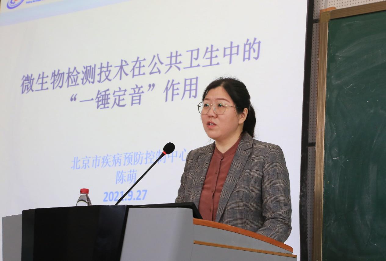 学系主任高春艳指出,陈萌老师作为北京市疾病预防控制中心的专家,参加了北京市SARS、禽流感、新冠等重大疫情防控,对传染病的实验室诊断和排查积累了丰富的经验,在学术科研方面也取得了丰硕的成果。希望同学们牢记陈萌老师的教导,找准自身定位,明确目标,刻苦学习,为全面建成小康社会,建设健康美丽中国贡献力量。