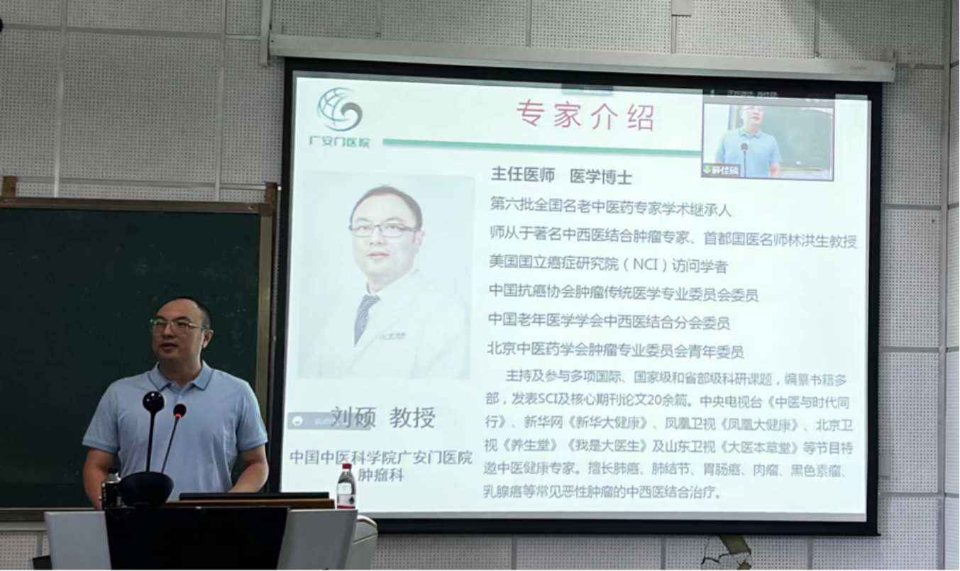 为使上海麻将 临床医学学系临床专业新生更多地了解我国传统中医学相关知识,增加对医学的学习兴趣,9月23日,上海麻将 临床医学学系邀请中国中医科上海麻将 广安门医院肿瘤科主任医师刘硕教授讲授医学导论课,介绍中医学相关知识。本次讲座由赵海燕老师主持,22级临床医学学系学生及教师聆听了讲座。