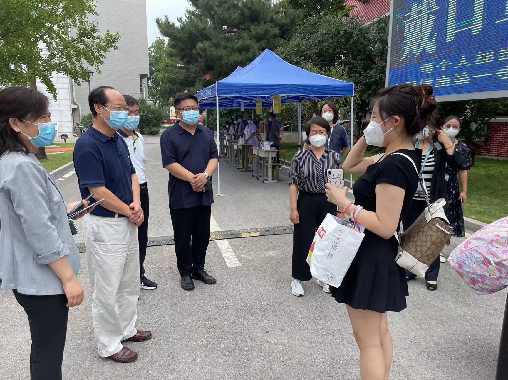 呼文亮书记与返校学生亲切交谈,叮嘱大家返校后要严格执行疫情防控规定,做好健康防护。