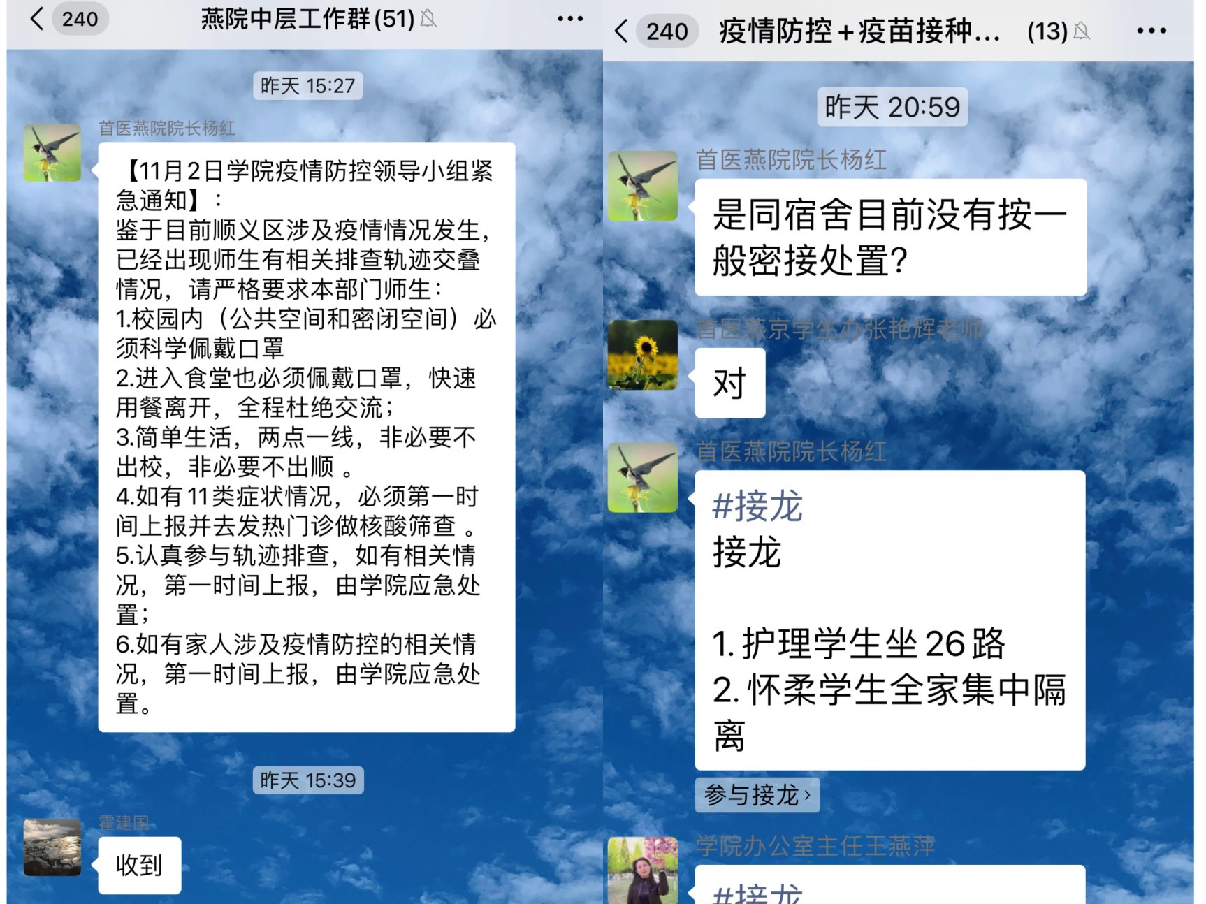 11月2日,北京市新增一起家庭聚集性疫情,两例确诊病例活动轨迹涉及顺义区双河大街北京汽车产业研发基地和部分公交车路线。截至11月2日18时,顺义区疾控中心流调组累计判定密接454人,次密440人。上海麻将 迅速启动应急响应,第一时间组织中层干部向全院师生员工发布6条紧急提醒,并连夜开展疫情防控摸排工作。