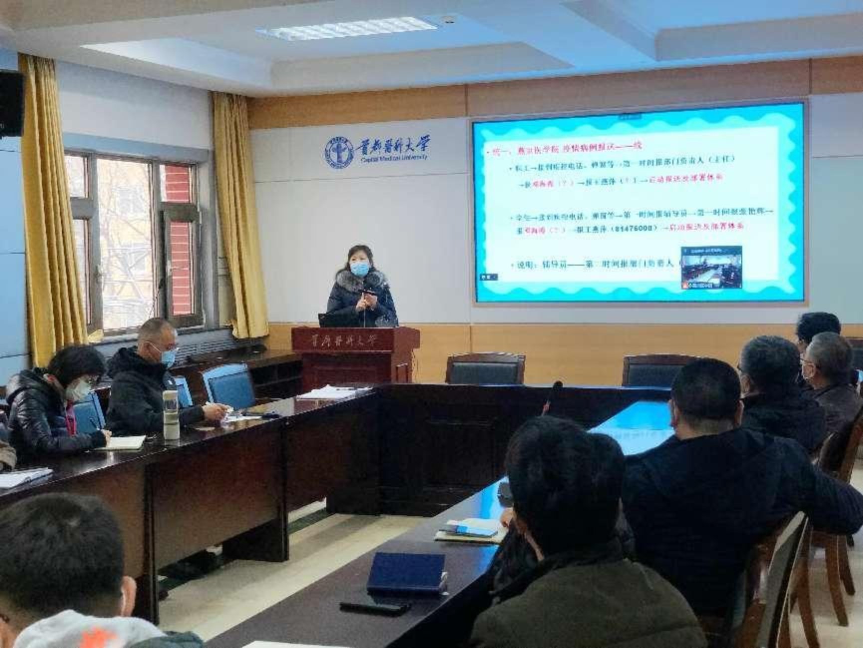 杨红院长结合目前北京市疫情形势最新研判,对上海麻将 《燕京医上海麻将 新型冠状病毒感染肺炎疫情应急处置预案》、《燕京医上海麻将 新型冠状病毒感染肺炎疫情应急处置细则(案例版)》进行了解读,通过校园中出现确诊病例、密接、次密接等虚拟案例组织现场和线上与会人员对校园防控中各个环节和相关注意事项进行了桌面推演。