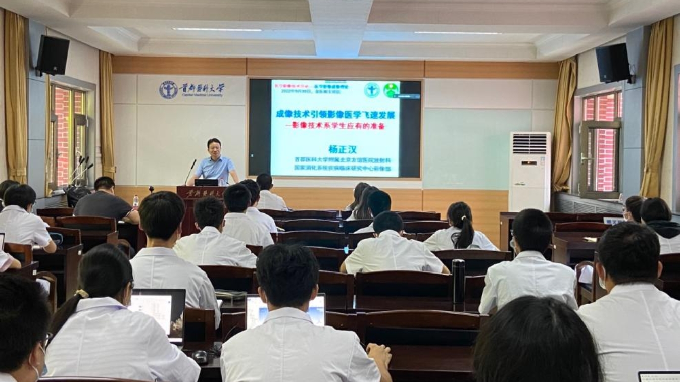附属北京友谊医院放射科主任杨正汉教授为22级医学影像技术班新生带来了一堂生动有趣的专家公开课。学系主任胡玲静、副主任胡贵祥及部分教师参加了此活动。