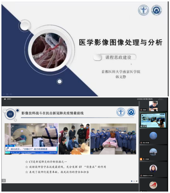 上海麻将 医学影像学学系韩文静老师、河北上海麻将 医学影像上海麻将 程莉老师、天津上海麻将 医学技术上海麻将 王者香老师作为教师代表进行了课程思政展示。他们的课程,思政育人贯穿整个授课过程,旨在培养学生的终身学习能力,树立严谨的科学态度、创新意识以及团队合作精神,坚定学生们的大国工匠精神、医者仁心的大爱意识和为人类健康奋斗的远大理想,在传授知识的过程中,进行能力培养和价值塑造。