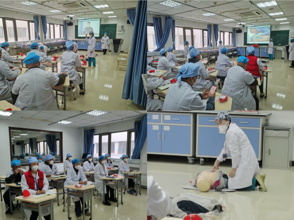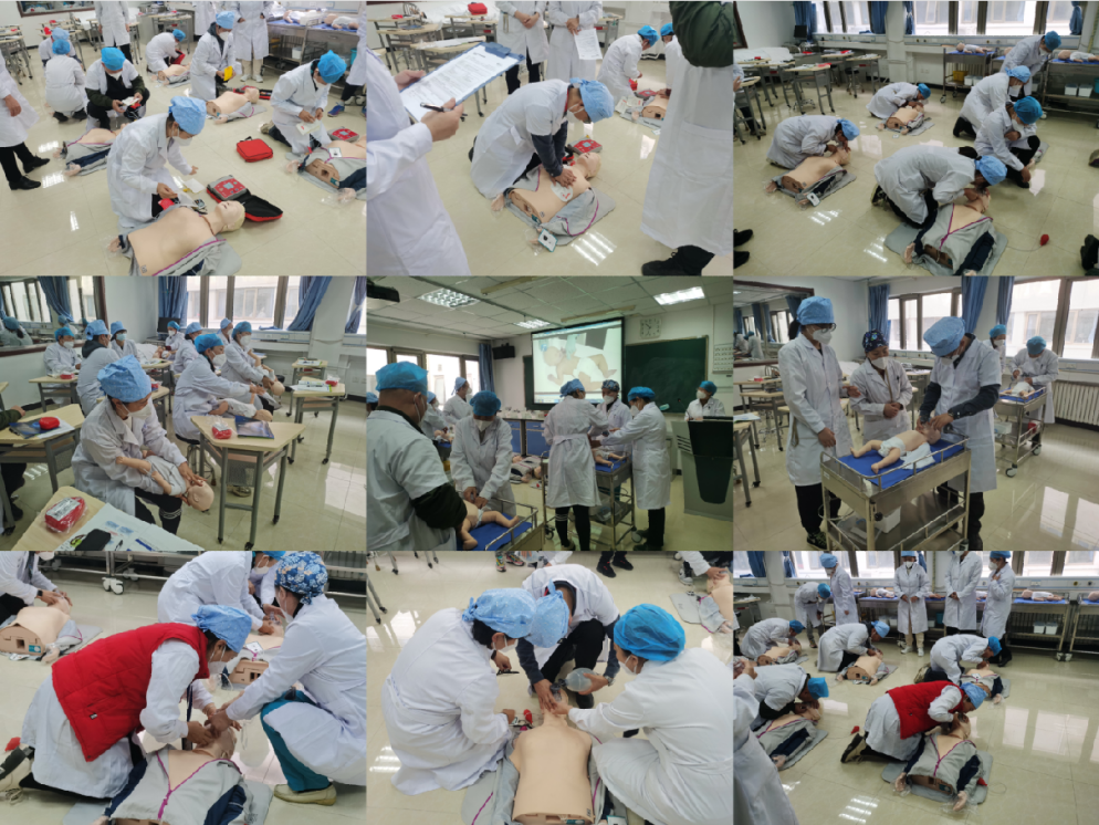 此次培训内容涵盖生存链和高质量心肺复苏知识,成人心肺复苏、AED的使用、儿童心肺复苏、气道梗阻时的海姆立克手法、阿片类药物中毒患者及溺水患者急救处理等。指导教师通过播放最新版教学视频,结合最新版基础生命支持课程的教材,并配备人体模型和抢救设备,同步进行讲解,将心肺复苏操作各个环节的步骤和手法进行逐一细致讲解。参加培训的学员现场分组,跟随视频指令进行操作演练,指导教师现场纠正并指导动作,有效提升操作规范性及有效性。