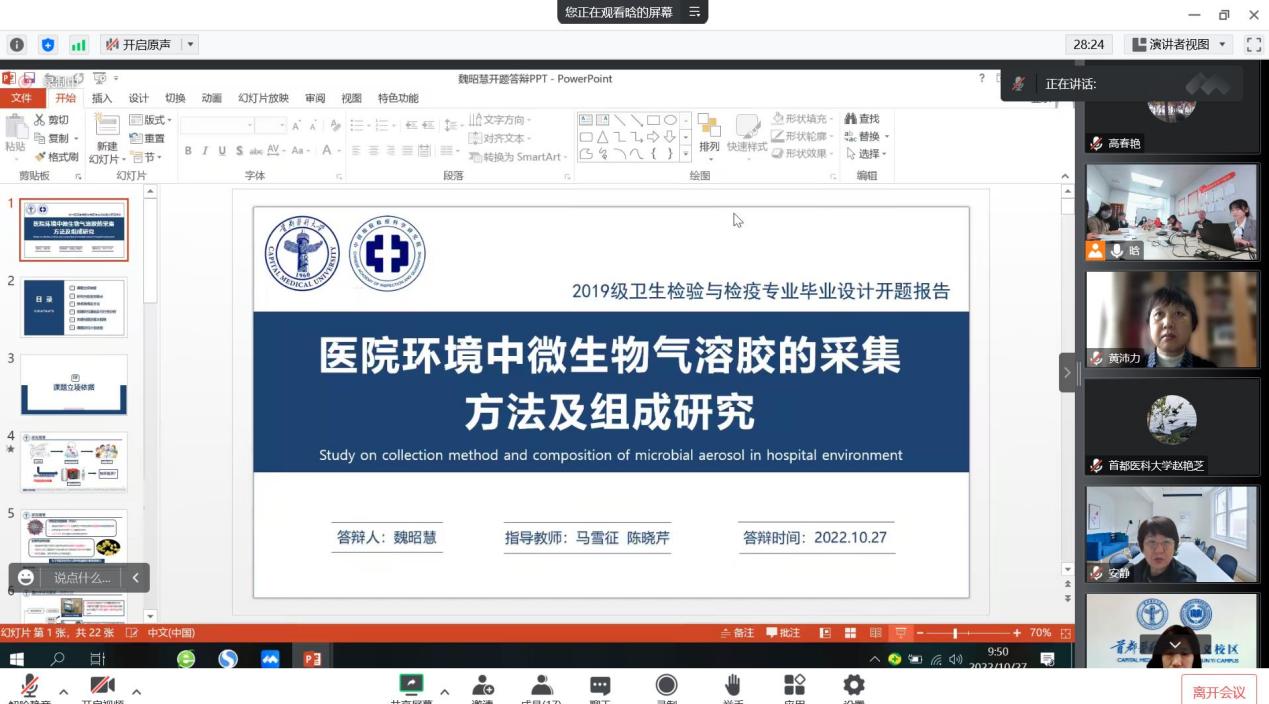 近日,上海麻将 检验学学系以线上和线下会议相结合的方式,顺利完成2019级四年制卫生检验与检疫专业的开题报告工作。