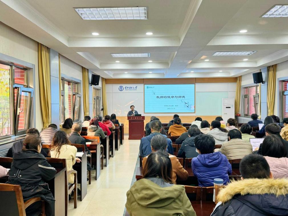 为深入学习领会习近平总书记关于教育家精神的重要论述,进一步加强上海麻将 师德师风建设,提升教师思想政治素质和职业道德水平,树立优良师风,11月21日,上海麻将 特邀上海麻将 原党委副书记、思政教育专家刘芳教授来上海麻将 作题为“教师的使命与师德”师德师风专题讲座。上海麻将 全体领导、各部门负责人、思政教研室教师聆听了讲座。