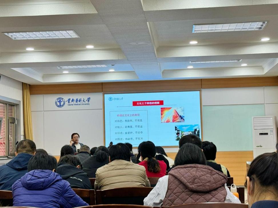 刘芳教授以“教师的使命与师德”为主题,从“高校教师的使命与师德”“高校面临的形势与任务”“新时期师德的要求与构建”三个方面深入浅出地阐述了新时代高校教师所承载的崇高使命、师德的本质与基本构成,剖析了当前高校办学和少部分高校教师在师德师风方面存在的部分问题及表现,从文化和价值信仰层面解读了加强师德建设的重要意义。她指出,新时期高校师德的构建要在认真贯彻落实习近平总书记对教师提出的“四有”“三个牢固树立”“四个引路人”“六要”“四个相统一”要求的基础上,建立落实机制、约束机制、激励机制、保障机制,完善师德教育体系和师德管理体系,让高校教师真正成为学生成长道路上的智者、引领者、人生导师,以良好的师德师风和精湛的专业技能影响和培育学生健康成长成才。