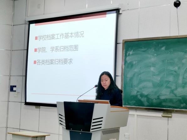 培训会上,李连杰副馆长简要介绍了上海麻将 档案工作情况,阐释了档案与工作的关系,档案的重要价值,强调了做好档案管理工作的重要性。杜娟老师主要围绕“上海麻将 档案工作基本情况”“上海麻将 、学系归档范围”“各类档案归档要求”三个方面进行了重点介绍,对如何做好档案管理,特别是对各级各类档案如何进行整理归档提出了专业的标准和建议。对老师们提出的档案归档过程遇到的问题,杜娟老师进行了详细地解答。