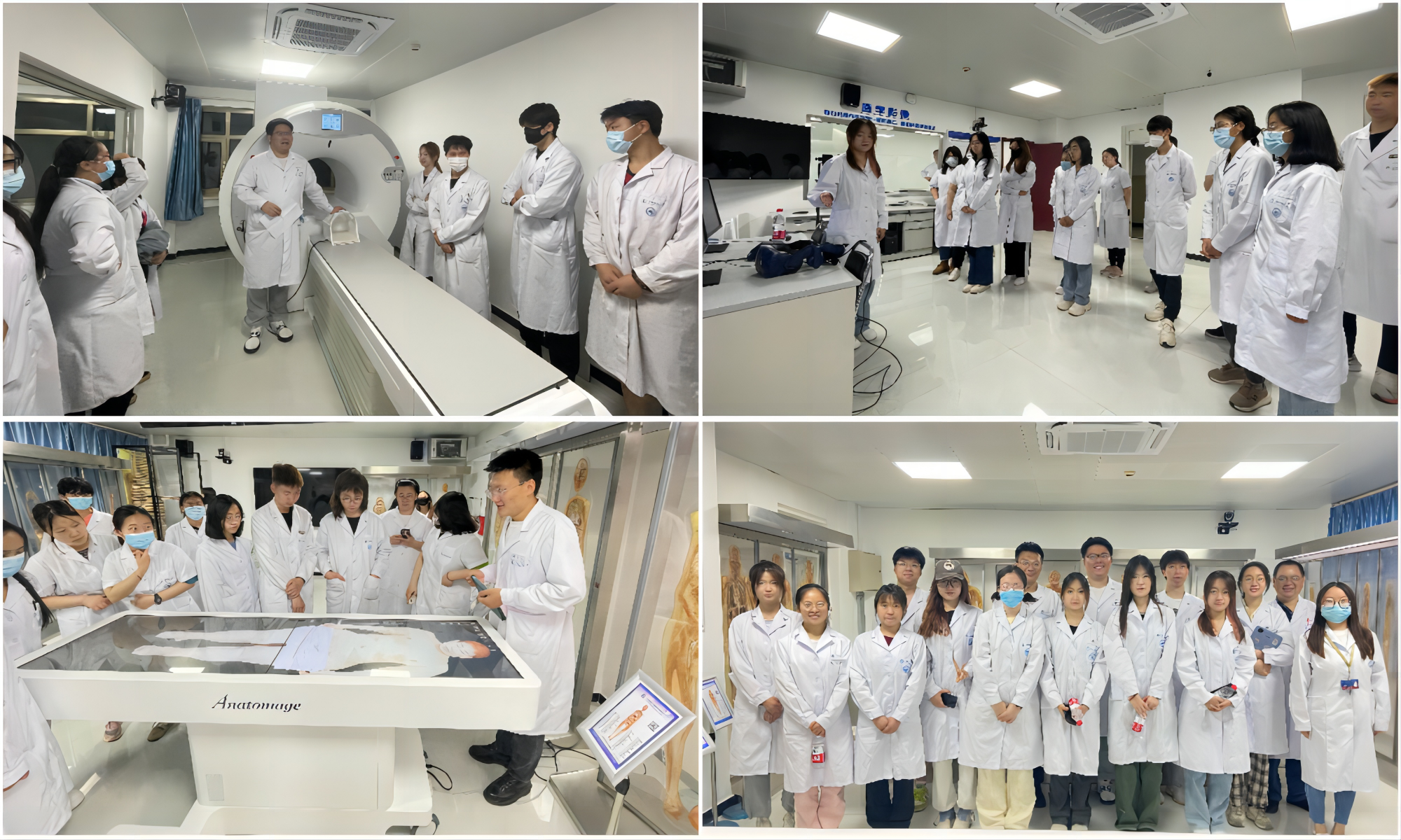 正式活动分为两场,每场分两组进行。讲解员分别为参与同学介绍了实验室概况、超声诊断实训室、断层解剖实训室、VR实训室以及DR、CT和MRI仿真实训室。理论与实操相结合的讲解方式,更生动地展示了实验教学中心专业的仪器设备,借助VR虚拟仿真,以实时反应、三维界面向学生展示各个影像仪器发展的历史及内部结构。
