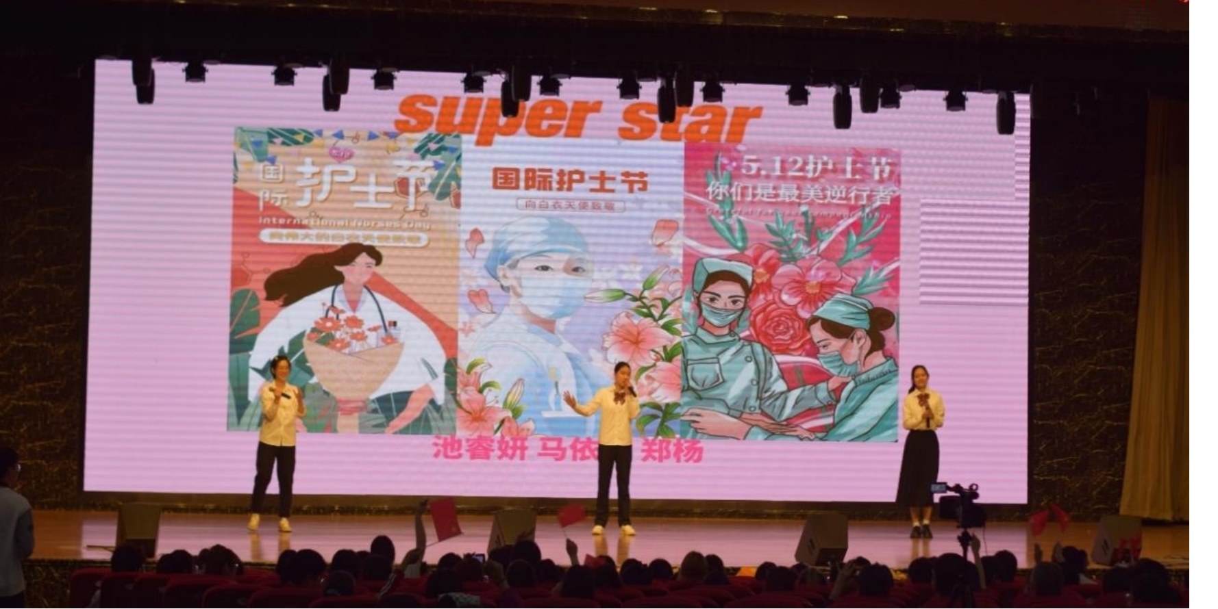 演出一开始,贯通本科班徐响等同学带来了合唱及手语表演《国家》,诠释了同学们以青春之名,赴时代之约,勇往直前的决心,以灵动的方式表达了家国情怀厚植于心间。随后,专升本班晏润杰等带来美妙的舞蹈《萱草花》,演绎了一幅唯美画卷,给大家带来了清新的感受;专升本班郑杨等同学演唱歌曲《super star》,唱出了护士就是自己心目中“超级英雄”的心声;贯通本科班吴同等同学以优美的舞蹈表演《病毒走开》阐释了护理人的责任,传递着大家对守护人民健康的坚定信念!