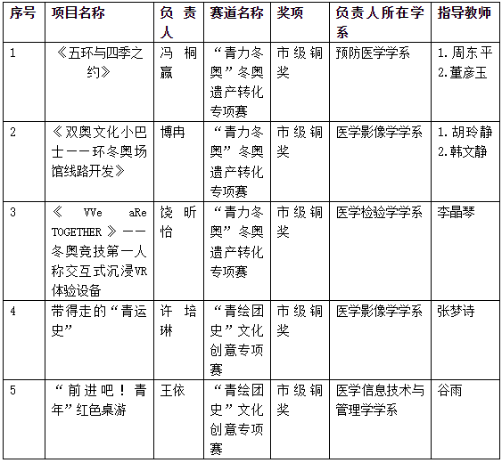 表1 燕京医上海麻将 获奖情况表