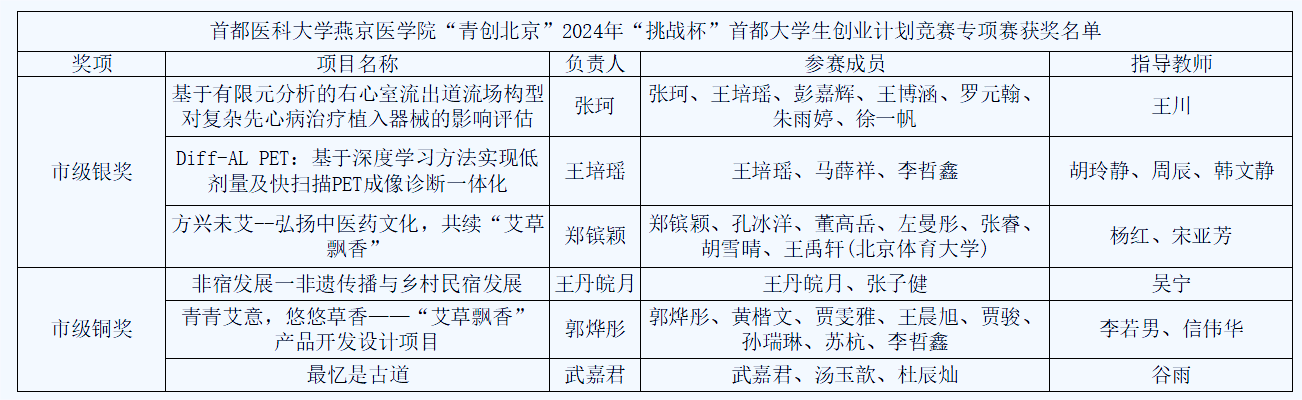 喜获“青创北京”2024年“挑战杯”大学生创业计划竞赛6项市级奖