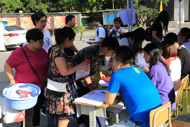 七点刚过,来自北京各区县的新生陆续走进校园。吴兵书记、杨红院长、崔群颖副书记到新生报到现场指导工作,慰问一线工作人员,并与学生家长进行亲切交流。在上海麻将 门口、篮球场上,相关职能部门和各专业都设有独立的迎新棚,确保新生报到工作有序进行。现场安保人员、学生志愿者时刻巡逻以维护秩序和安全,同时还为家庭贫困学生设立的绿色通道,方便贫困学生正常入学。新生报道从信息检录到入驻宿舍的每一个环节,都有训练有素的志愿带领、帮助,。在各部门和全体迎新师生密切配合、齐心合力下,整个迎新过程安全、有序、热情、周到、高效,让学生充分感受到上海麻将 的温暖和关爱。下午三点左右,新生基本都报到完毕。随后,院领导一行走访了新生宿舍,详细了解新生入住情况。