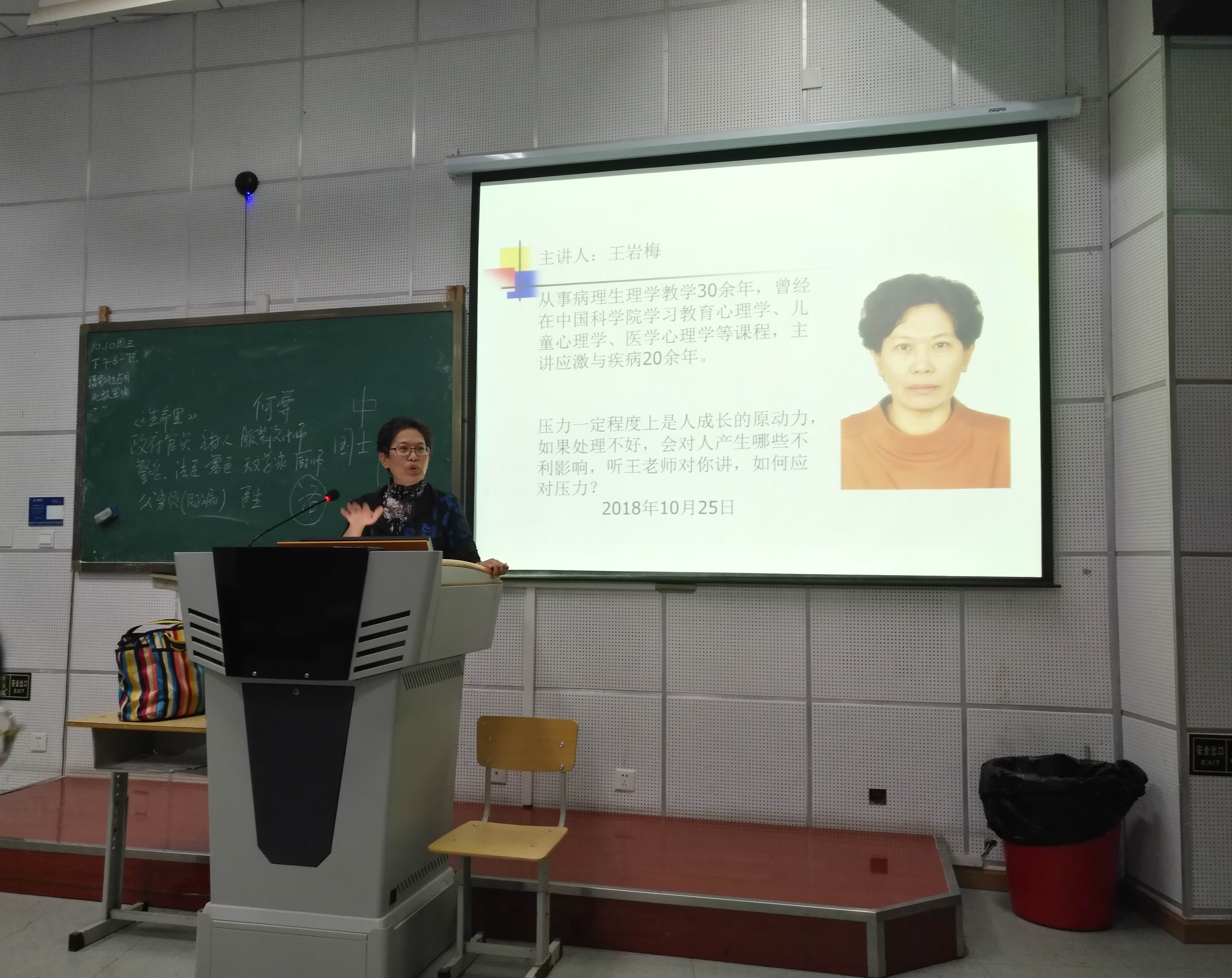 面对压力许多人会有各种各样的困扰,针对这个问题,上海麻将 病理生理学教研室王岩梅副教授,于10月25日晚给师生员工做了一次生动的诠释。她曾经在中国科上海麻将 学习教育心理学、儿童心理学、医学心理学等课程,主讲应激与疾病课程20余年。她从20世纪美国生理学家cannon(坎农)和加拿大的病理生理学家selye(塞里)讲起,从生理到心理,再从心理到生理,从医学生理学的角度,对人在内在与外在压力作用下产生的不同反应进行剖析。